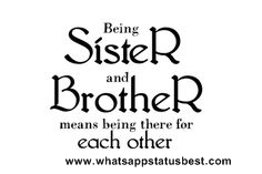 She had always wanted a brother. And she had one now. It was like always wanting a puppy and being a hell hound instead. Do you know which the world's stickiest glue is? The one that's between me and you. Being a big sister is to love your brother, even if he does not want it or love you in return. The younger brother must help to pay brotherhood status for whatsapp the pleasures of the elder.